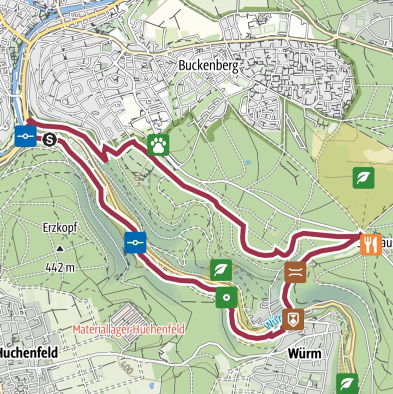 Der Rückweg erfolgt über die Lettenbachklinge nach Würm. Danach wandern wir über die Talstraße und die Täschenwaldstraße und folgen dem Ostweg (HW 5) entlang der Würm zurück zum Ausgangspunkt.